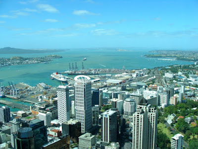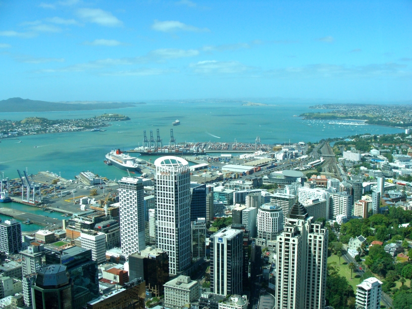 e regressámos a Auckland, que nos aparece, à esquerda, como um bilhete postal.