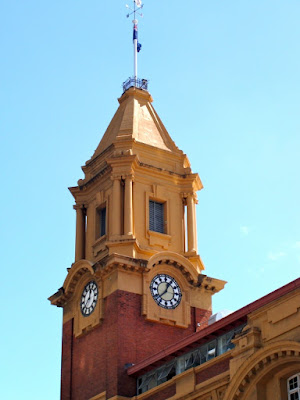 a pé, no Heritage Trail, para fotografar as casas vitorianas de comerciantes, agora pertença da Universidade e, outra vez, o Old Art Clock Tower Building.