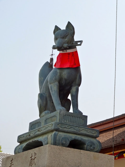 fica um pouco fora do centro da cidade e servimo-nos do Pass da JR para lá chegar. É o mais famoso dos muitos santuários dedicados à deusa do arroz, Inari, que se identificam pelas raposas de pedra com peitilhos vermelhos que guardam os templos.