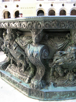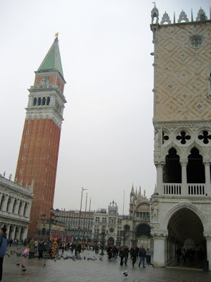 San Marco estava calminha. Bom para um belo passeio, para fotografar o Campanilli, as Colunatas, as esculturas do pórtico central da Catedral, São Marcos e os Anjos, os Tetracas (que representam Diocleciano, Maximiano; Valeriano e Constâncio), os mosaicos da fachada (que beleza!...), a Torre do Relógio. O Palácio dos Doges. A Ponte della Paglia e, outra vez, a Ponte dos Suspiros e as esculturas (pequenas) nas laterais da fachada principal do Palácio dos Doges (a