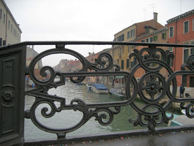 Em 1516, o Conselho dos Dez decretou que todos os judeus de Veneza se confinassem à ilhota de Cannaregio. As comportas dos canais de acesso eram dirigidas por guardas cristãos. O nome de gueto deve-se a uma fundição (“geto” em veneziano) que existia no local. O termo generalizou-se. Só podiam sair de lá com distintivos que os identificassem e só lhes era permitido trabalhar no comércio de tecidos, empréstimos de dinheiro e medicina.Ainda hoje habitam lá judeus, como confirmámos. Vagueámos um pouco, depoi de atravessar a célebre ponte de ferro forjado por onde passavam os judeus. Fotografámos o exterior da sinagoga e confrontámo-nos com o terror do holocausto, no monumento ao mesmo. Para que não se esqueça o que parece que eles já esqueceram ou não querem recordar com justiça…Viemos de vaporeto até Ferrovia, mas bem que poderíamos vir a pé, porque é bem perto do hotel!...