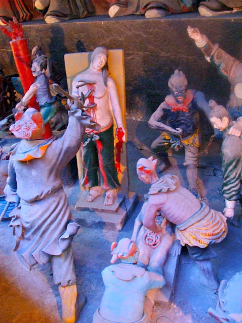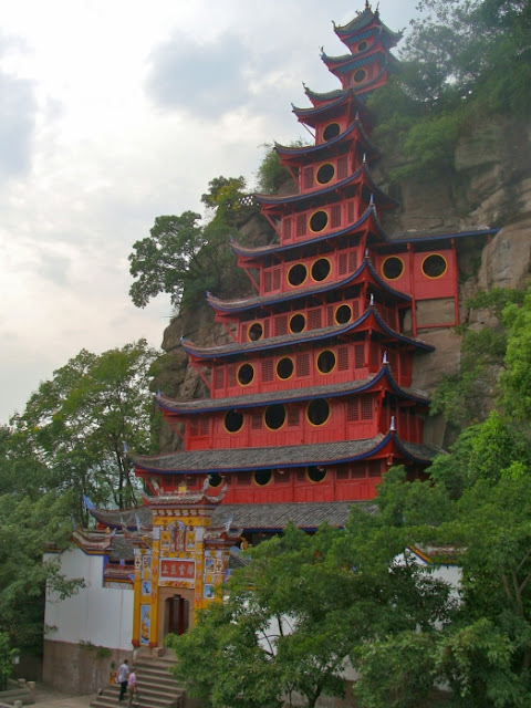 encravado na rocha, Lanruo Dian, com 12 pisos que subimos por escadas de madeira com degraus irregulares. Não foi fácil.