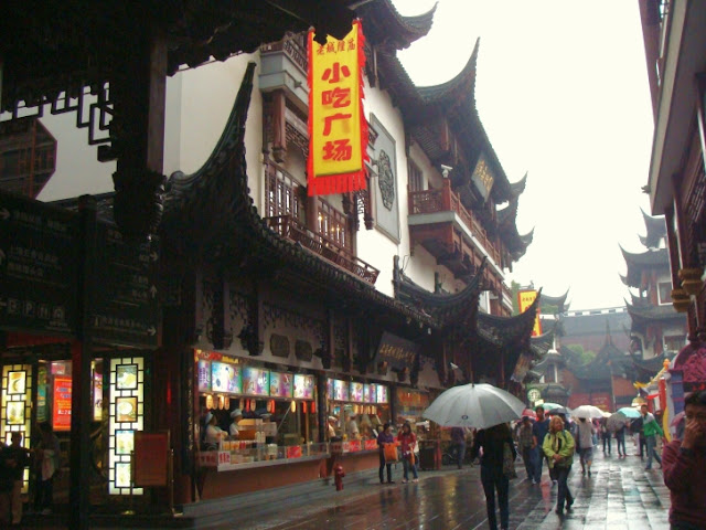 a principal rua de comércio de Shangai, pedonal, com lojas de marcas internacionais e becos onde se podem encontrar as respectivas cópias... A chuva não ajudou ao passeio e o nosso espírito consumista é muito pequenininho. Só a Suzana se arriscou.