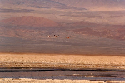 O Salar de Atacama è uma depressão com uma área de 3.200 quilómetros quadrados. É um lago subterrâneo de águas salgadas, salobras, habitat de belos flamingos rosa.