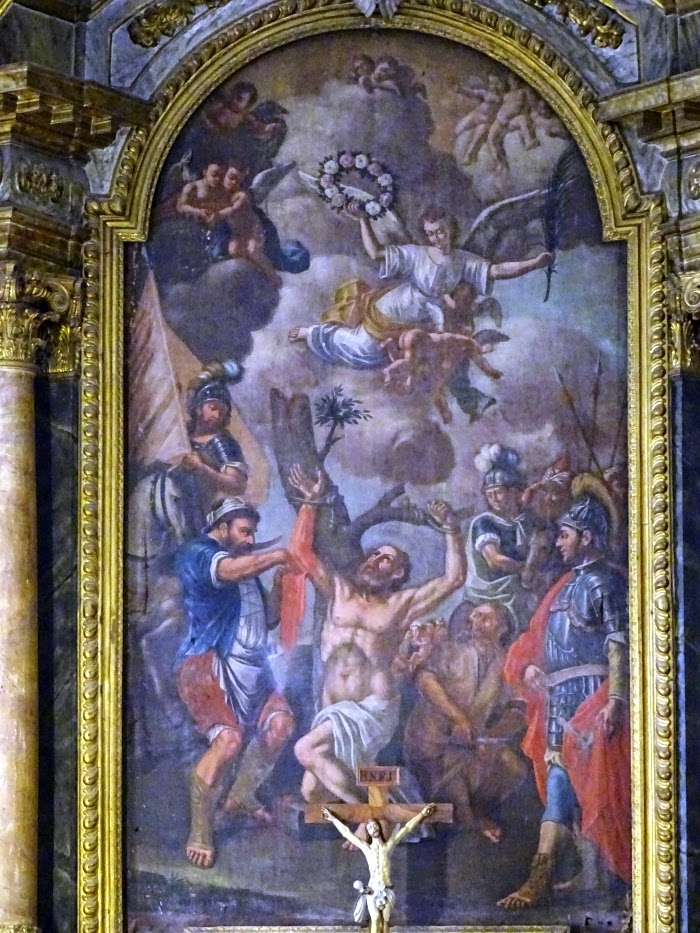 e uma tela representando o Martírio de São Lourenço, do pintor Pascoal Parente.